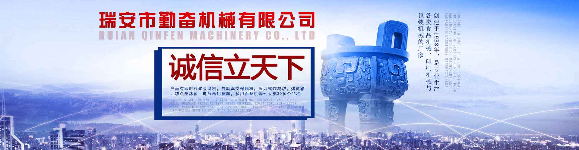 瑞安市勤奮機(jī)械有限公司創(chuàng)建于1988年/食品機(jī)械定制專家